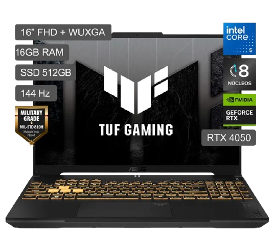LAPTOP, ASUS, TUF F16, CORE 5 210H, 16GB, 512GB RTX 4050 6GB 16P WUXGA 144HZ KB ESP