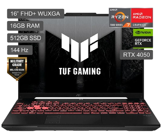 LAPTOP GAMER, ASUS, A16 TUF RYZEN 7 7445HS 16GB 512GB NVMe RTX 4050 6GB 15